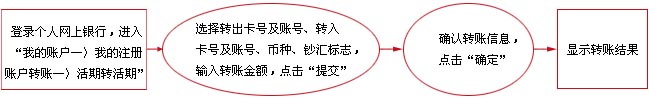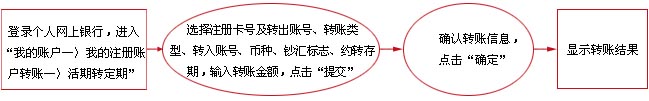 2、使用网上银行转账,理财金账户卡支持整存整取、存本取息、零存整取续存、教育储蓄续存等活期转定期业务;e时代卡支持整存整取、定期一本通、零存整取续存、教育储蓄续存等活期转定期业务;灵通卡支持定期一本通,零存整取续存、教育储蓄续存等活期转定期业务。