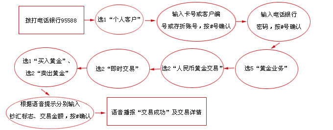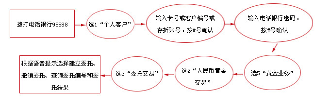 使用电话银行进行黄金投资,您需要使用灵通卡、e时代卡或理财金卡自助注册电话银行或前往工行任意网点申请开通电话银行,并在网点开立黄金账户、申请电话银行黄金业务。