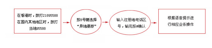 无论您身处何处,无论您在内地或者香港办理电话银行开户手续,都只需要接通一个电话号码(在内地的客户请拨打95588,在香港的客户请拨打21895588)便可通过语音提示漫游到您的个人电话银行开户行办理相关银行业务,同时电信部门只按照市话标准收取通话费用,工商银行不再收取任何通话费用,最能配合经常穿梭于内地各城市之间以及内地和香港、业务频繁的您,更灵活、快捷地处理各种银行服务。
