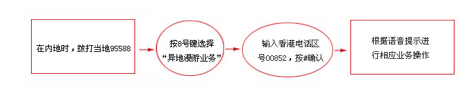 的客户请拨打95588,在香港的客户请拨打21895588),选择异地漫游服务即可直接办理开户地的银行业务,完全不涉及长途电话费用。